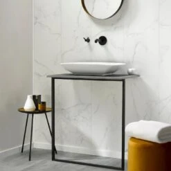 The Castello white marble wall paneling is from the Decorwall Elegance Mineral range. Embodied by their beautiful white background colour and dainty marble detailing this Carrara marble panel is ideal for homeowners wanting a modern contemporary interior in their bathroom.