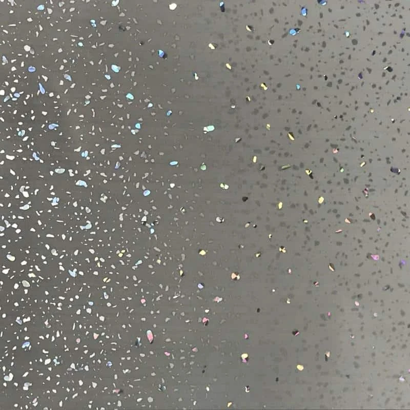 The perfect compliment to high-style, luxury interiors, the grey sparkle PVC wall cladding from The Panel Company is bright, bold and glamorous. Featuring large metallic sparkles embedded on a sleek grey background, these grey sparkle wall panels have a multi-coloured sparkle effect that is perfect for transforming drab interior spaces.