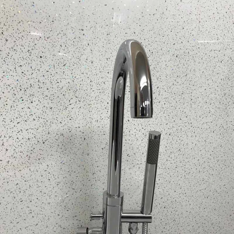 - White shower panels with a subtle granite effect pattern, offset by imbedded metallic sparkles
