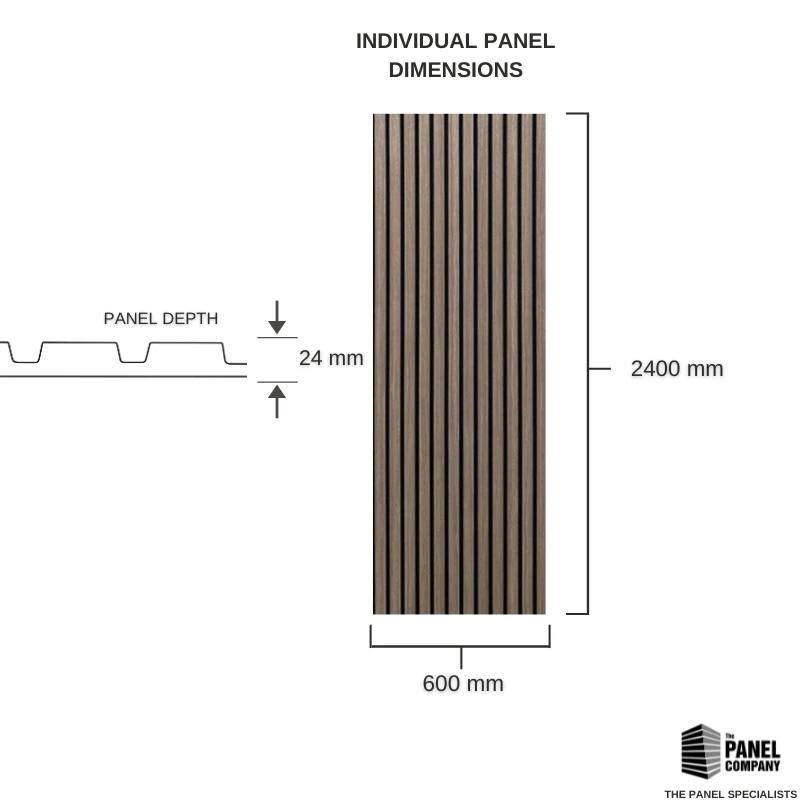 Overall Thickness : 24mm (Felt backing: 9mm, Slat strips 15mm)