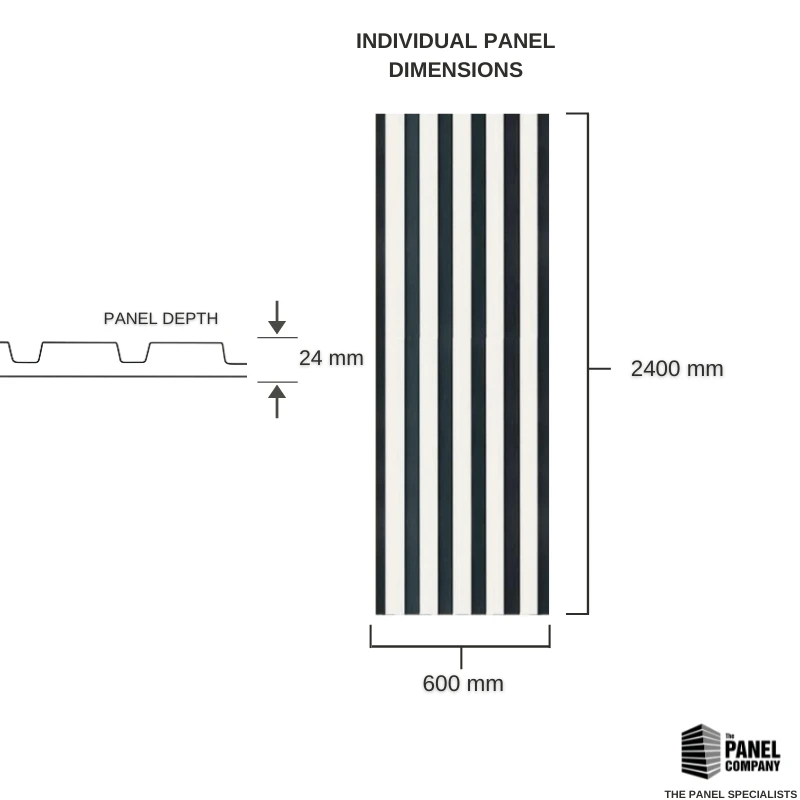 Overall Thickness : 24mm (Felt backing: 9mm, Slat strips 15mm)