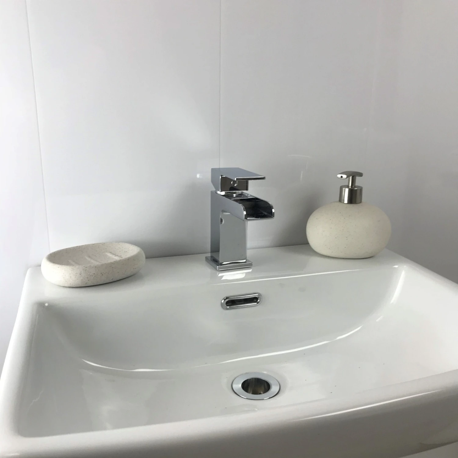 The white gloss PVC ceiling panels are also available in a 5mm thickness.